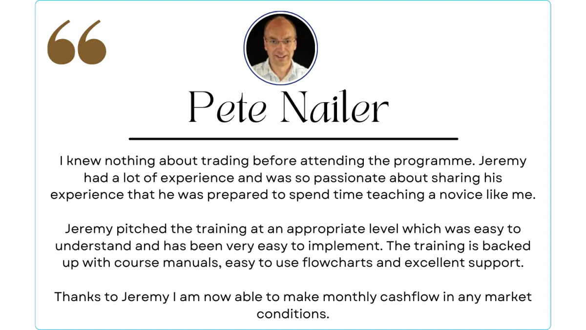 Jeremy has been investing since 2007 and teaching since 2010. The strategies taught have been used across full market cycles and market conditions.